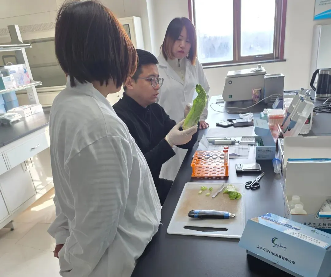 此外,为提升农产品质量安全风险监测能力,区农业农村局还组织开展了胶体金速测技术专题培训。培训采取“理论讲解+实操演示”相结合的模式,面向重点生产基地技术人员系统讲授胶体金检测的工作原理、操作流程和结果判读等关键内容,并现场指导学员进行操作演练,确保参训人员熟练掌握、规范运用。