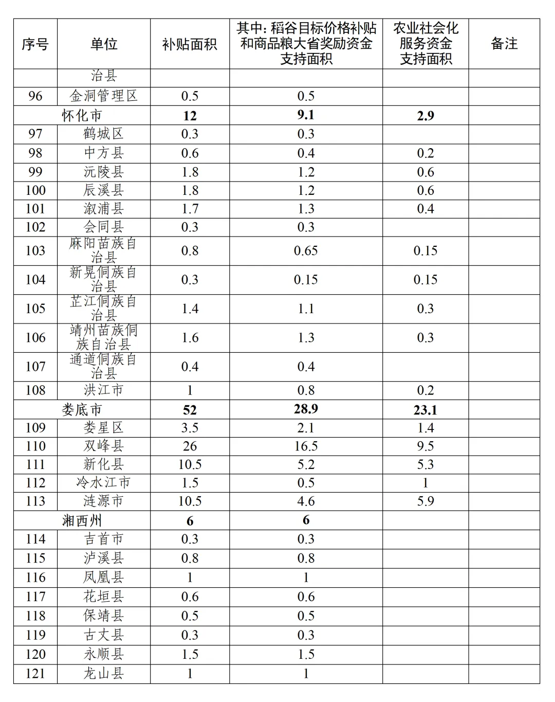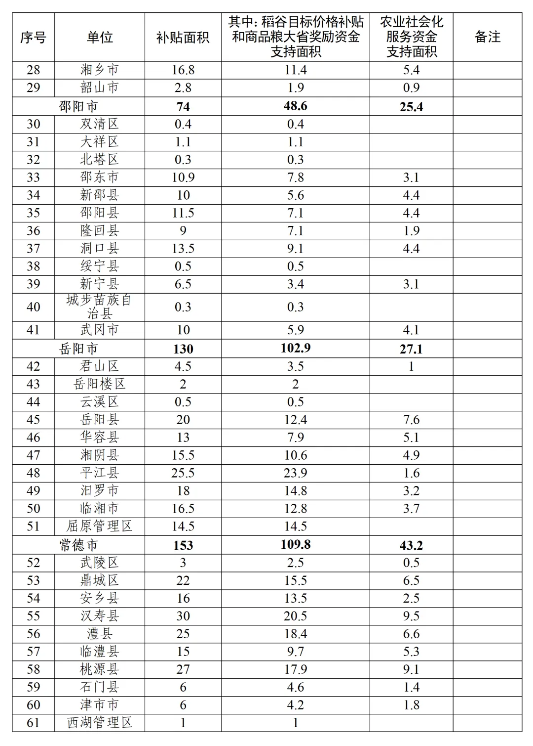 附件:2026年全省水稻机插机抛作业补贴面积安排表(点击图片可放大)
