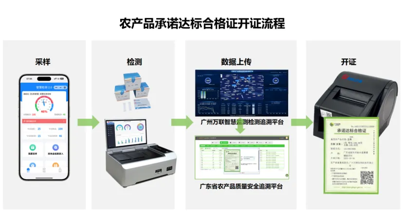 依据《农产品质量安全承诺达标合格证管理办法》(农业农村部令 2025 年第 4 号)要求,智检小站严格贯彻落实相关规定,规范配备专属合格证打印机,以标准化服务为水产养殖质量安全保驾护航。养殖户无需扛样奔波、耗时等待,塘口取样后送至服务点,即可完成快速检测,当场获取结果,实现 “即抽即检即反馈” 的闭环服务。