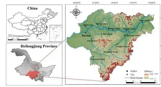图2 本文以哈尔滨市行政区域为模拟点,连续8年进行模拟,模拟地点的详细坐标为127°57′E,45°37′N