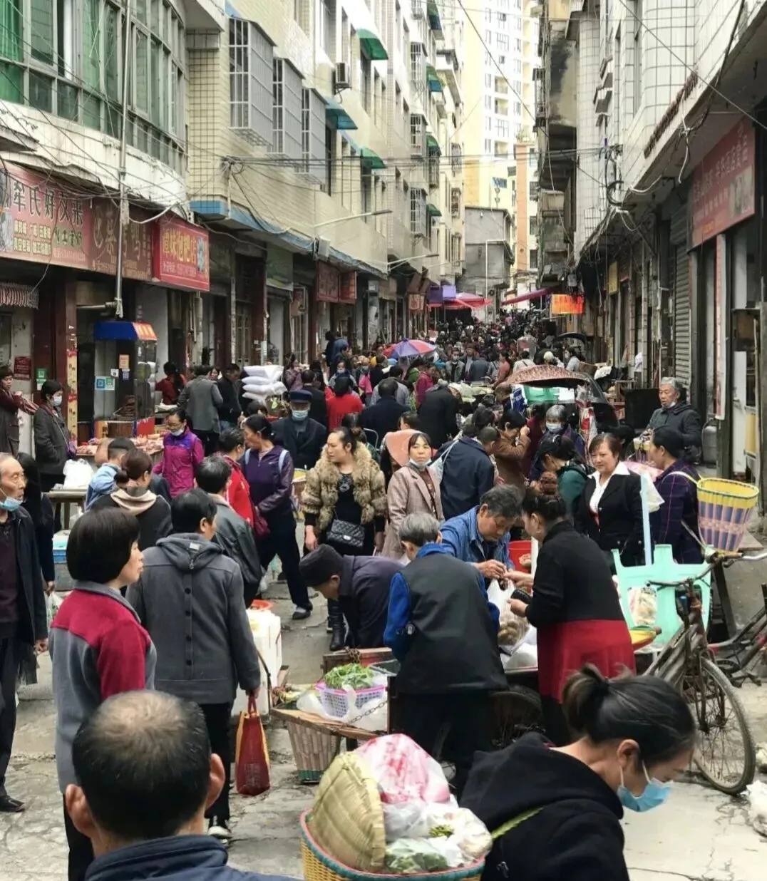 镇上的早市十分热闹,尤其是赶街的日子,附近村里的人天刚蒙蒙亮就往镇上赶。有人用三轮车拉着土鸡、土鸭和自家的土货来卖,还有不少流动商贩。集市里人挤人,绝大部分都是中老年人,年轻人很少。尤其是冬天的早上,寒风凛冽,年轻人大多还躲在被窝里不肯起。集市上的农产品丰富、新鲜,带着原汁原味的烟火气,那一刻突然觉得,小镇的生活也不赖。