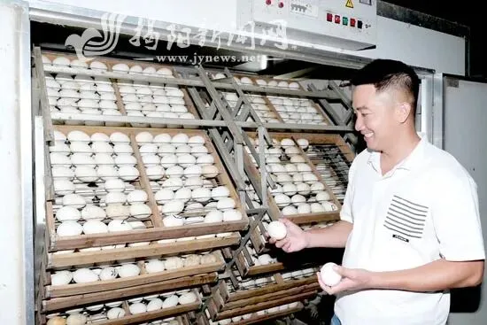 “我们通过人工调控光照、温度等环境因素,调节鹅的内分泌系统,进行反季节繁殖,成功实现种鹅全年产蛋。”说话间,洪锐鑫引着记者来到孵化车间。只见一颗颗圆润饱满的种蛋整齐地摆放在孵化机中,在精准营造的适宜环境中,开启孵化进程。“相比传统孵化模式,全自动孵化更加稳定、高效。一台孵化机一次能容纳3720颗蛋,它们全年不休地运转,现在我们基地年孵化鹅苗40万只,往往蛋还在机中,就已经被预定一空了。”说这番话时,洪锐鑫脸上洋溢着丰收的喜悦。