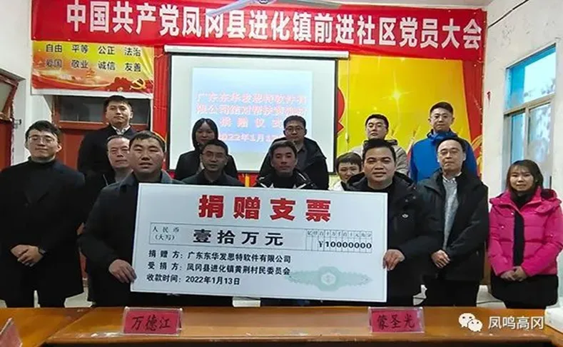 向贵州凤冈县进化镇黄荆村捐赠10万元