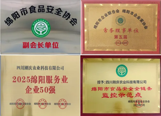 刚庆农业积极推行“公司+基地+农户”合作模式,持续开展品种培优与品质提升,大力发展绿色农业,以实际行动助力乡村振兴。作为绵阳市企业联合会常务理事单位,公司积极参与地方经济建设与行业交流,推动区域农业协同发展;同时作为绵阳市食品安全协会副会长单位,其在食品安全管理方面的专业实践深受认可。