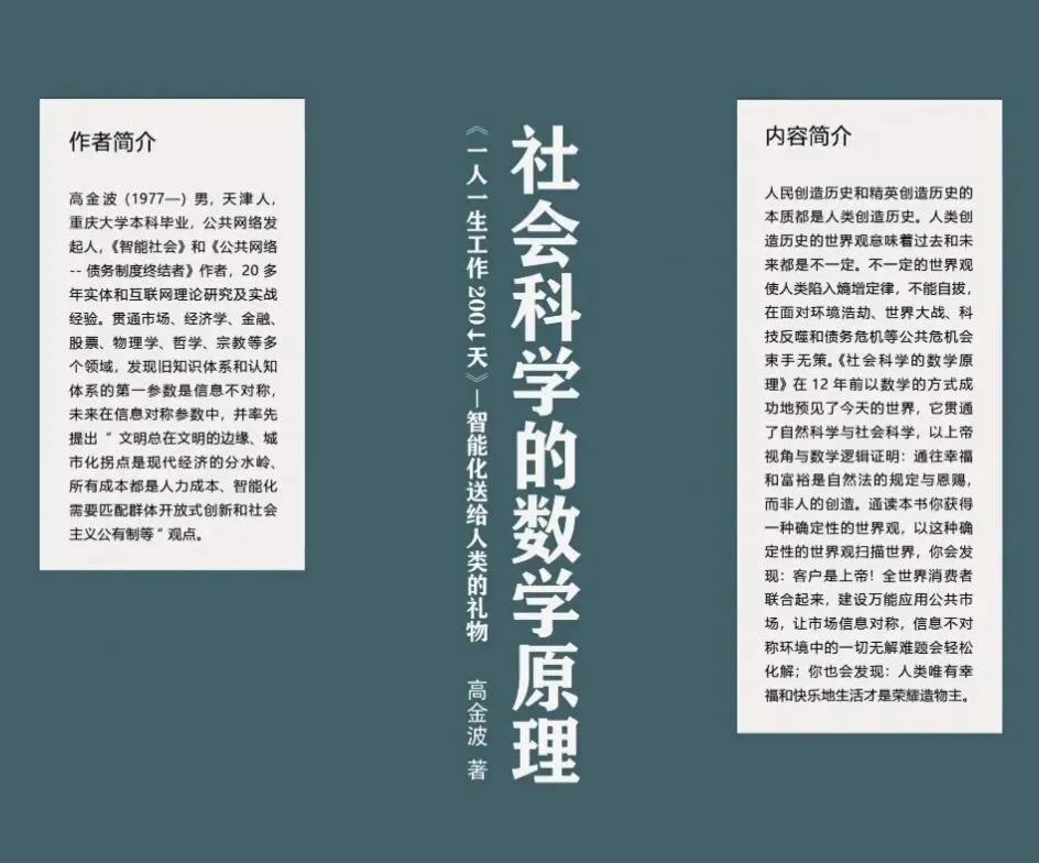 女:今天接着跟大家分享《一人一生工作200天 智能化送给人类的礼物》,这本书是2013年写的,不但预见了今天所有的问题,最关键的是给出了解决问题的方案。接下来跟大家 分享,我们对这本书的理解和感受。