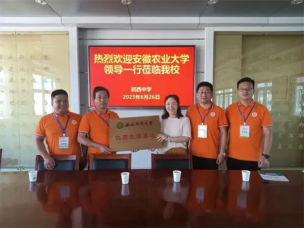 2023年6月26日下午,安徽农业大学领导一行莅临我校参观交流,同时授予我校“优质生源基地”称号,并发放我校优秀毕业生录取研究生的喜报。