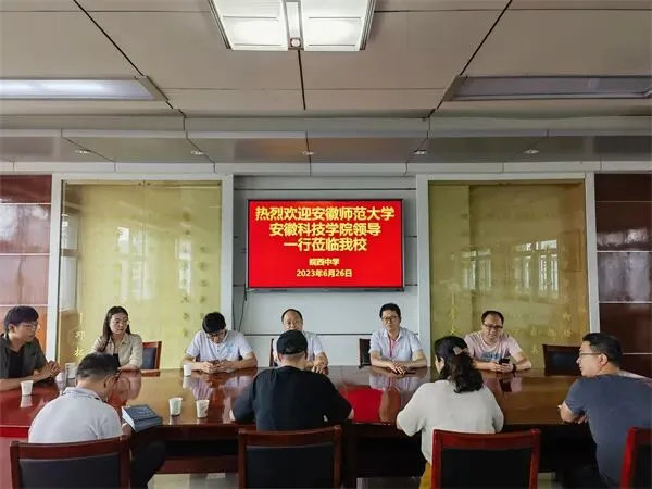 2023年6月26日上午,安徽师范大学和安徽科技学院领导一行莅临我校参观交流,同时安徽师范大学授予我校“优质生源基地”称号。