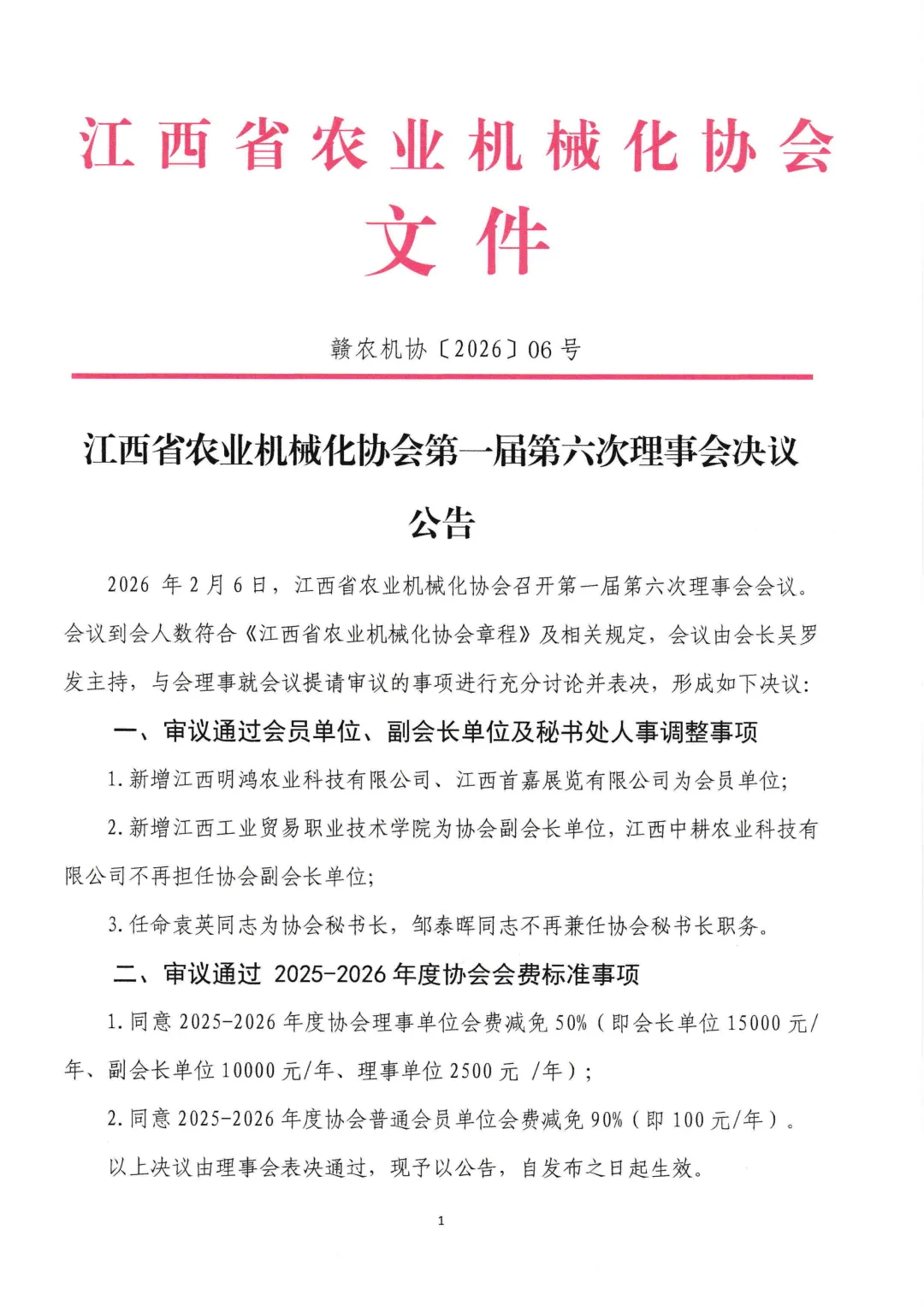 2.新增江西工业贸易职业技术学院为协会副会长单位,江西中耕农业科技有限公司不再担任协会副会长单位;
