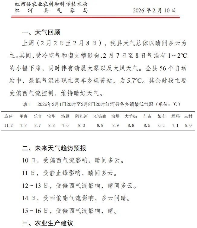 >红 河 县 农 业 气 象 服 务(2026年第6期)