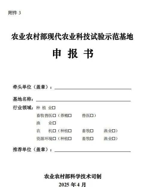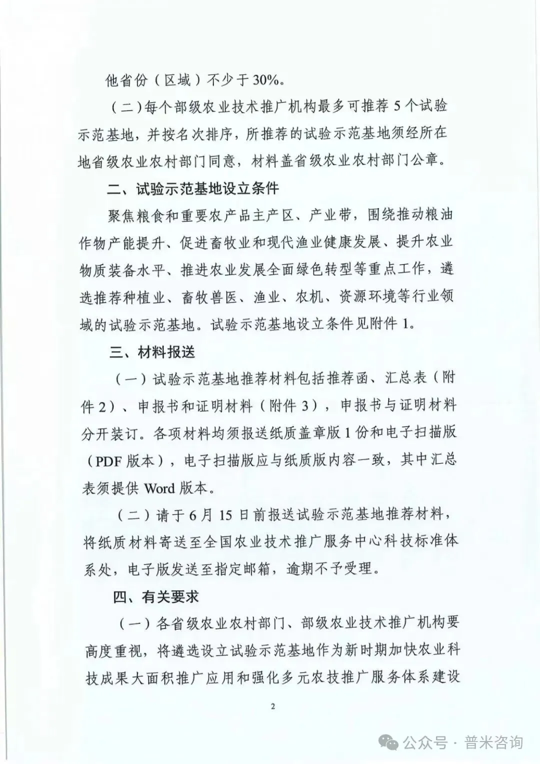 农业农村部:关于遴选现代农业科技试验示范基地的通知,每省不超过15个