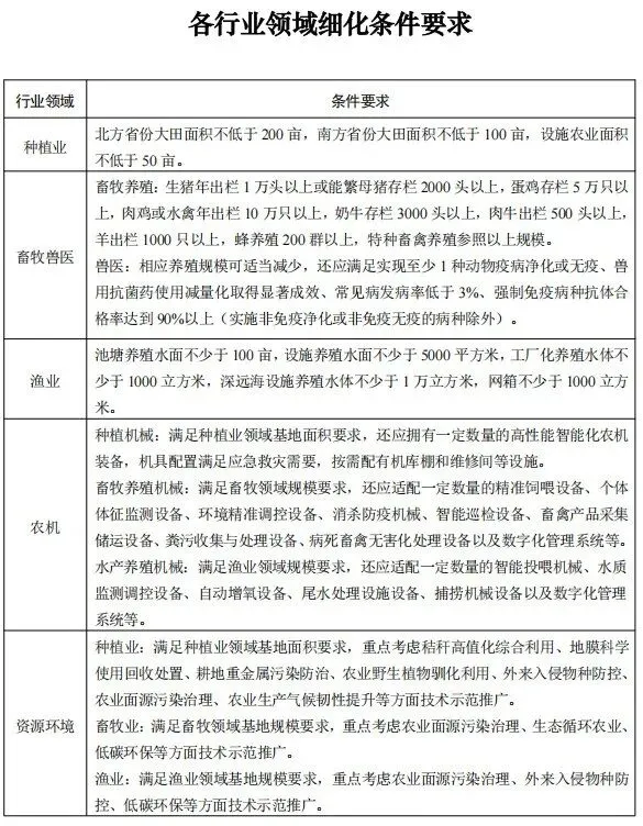 2. 具有适宜的面积规模,符合开展种植业、畜牧兽医、渔业、农机、资源环境等行业领域示范推广工作的要求。