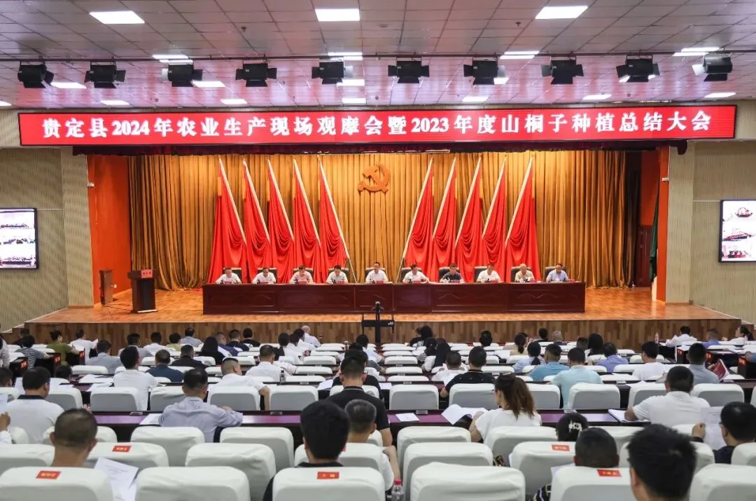 为全面部署推进全县春季农业生产工作,确保全年农业工作开好局、起好步。5月24日,贵定县召开2024年农业生产现场观摩暨2023年度山桐子种植总结大会,会议分现场观摩和总结大会两个阶段进行。县委副书记、县委政法委书记罗仁伟等县四家班子领导参加。现场观摩中,采取南北镇(街道)交叉观摩方式进行,对全县8个镇(街道)共8个项目进行观摩。会议现场