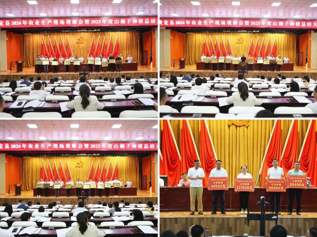总结大会上,通报相关文件,开展交流发言,并对42个先进集体、61名优秀个人、11 户种植示范户及作出突出贡献的1家公司进行通报表扬和授牌表彰。县委副书记、县委政法委书记罗仁伟对全县农业生产工作作安排,县委书记班代荣结合观摩情况就抓好全县农业生产和山桐子种植工作作总结讲话。会议强调,全县上下要深入贯彻落实习近平总书记对“三农”工作系列重要指示精神,认真贯彻落实中央、省委、州委农村工作会议精神和全省、全州春季农业生产现场推进会议精神,进一步统一思想,坚持目标导向、问题导向和结果导向抢抓农时,各司其职补短板、强弱项,推动各项工作干在实处、走在前列,确保实现“双过半”,奋力书写贵定县农业发展新篇章。会议要求,要紧盯农业更强,统筹抓好农业产业发展,推动粮食稳产增产、产业做优做强。坚决扛起粮食安全政治责任,全力做好技术服务指导、抓好粮食单产提升,聚焦“五良”应用持续发力,严格落实坝区带山区工作机制,全面落实“藏粮于地,藏粮于技”。聚焦茶叶、刺梨、山桐子三大主导产业及生猪、肉牛等养殖产业发展,持续提升农业产业水平。要紧盯农村更美,统筹抓好美丽乡村建设,聚焦“新农村、心康养”旅游发展定位,坚持量力而行、尽力而为,进一步挖掘旅游资源、完善规划布局、丰富旅游业态,推动贵定乡村旅游高质量发展。要紧盯农民更富,统筹抓好惠民政策落实,确保守住不发生规模性返贫底线,促进农户增收。要聚焦工作高质高效转观念、强作风,树牢创先争优意识、优质高效意识、敢闯敢干意识、知难而进意识、为民服务意识,扎实推动农业农村工作落到实处。