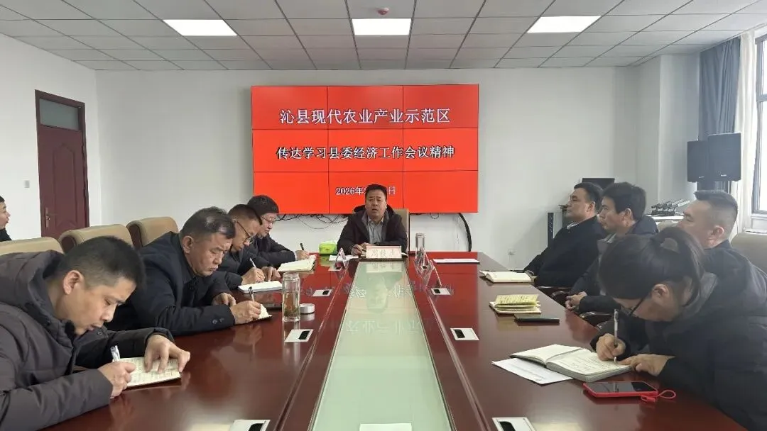 2月10日,沁县现代农业产业示范区召开专题会议,传达学习2026年沁县县委经济工作会议精神,紧扣县委关于示范区建设、项目管理、招商引资等重点工作部署,统一思想、凝聚共识、细化举措,推动会议精神在示范区落地生根、见行见效。示范区党工委书记周铁虎主持会议并讲话,党工委副书记、管委会主任原伟松,党工委委员、纪检监察工委书记崔建斌,运营总监张世顺等参加会议。会议指出,2026年县委经济工作会议为全县高质量发展擘画了蓝图、明确了路径,对示范区工作提出了具体要求。会议强调,要持续优化项目管理机制,用好项目“四库”管理和全生命周期服务平台,实行项目信息每月更新、动态管理;要全力强化招商引资实效,深化与中国供销集团、寿光农控集团等重点企业对接合作,推动更多优质农业项目签约落地、达产达效。示范区将以此为根本遵循,坚持项目为王、招商为要、服务为先,全力打造全县现代农业发展核心引擎。围绕贯彻落实会议精神,周铁虎对当前重点工作作出三点安排部署。一是紧盯经济指标,确保圆满完成。全体人员要牢固树立目标意识、责任意识,紧盯年度各项经济指标任务,强化运行调度、补齐发展短板、深挖增长潜力,以务实作风和过硬举措推动指标稳步提升,确保高质量完成全年各项目标任务,为全县经济发展提供坚实支撑。二是抓实项目拉练,全面做好迎检。针对全县项目拉练观摩活动,各包联责任人与企业要压实责任、细化举措,全面梳理项目建设成果,精心打造观摩点位,规范现场管理、完善档案资料、优化讲解流程,以高标准、严要求做好各项迎检准备工作,充分展现示范区项目建设的良好形象与显著成效。三是致以新春祝福,共话奋进征程。春节将至,周铁虎代表示范区党工委、管委会,向全体干部职工、入驻企业及家属致以诚挚的新春问候和美好祝愿,感谢大家一年来的辛勤付出与鼎力支持,勉励大家在新的一年里同心同德、携手共进,继续为示范区高质量发展贡献力量。新征程展现新作为,新时代谱写新篇章。沁县现代农业产业示范区将以此次会议为契机,锚定目标、勇担使命、真抓实干,奋力推动项目建设、产业发展、招商引资实现新突破,为沁县经济社会高质量发展注入更强动力、作出更大贡献。编辑 | 李 茜