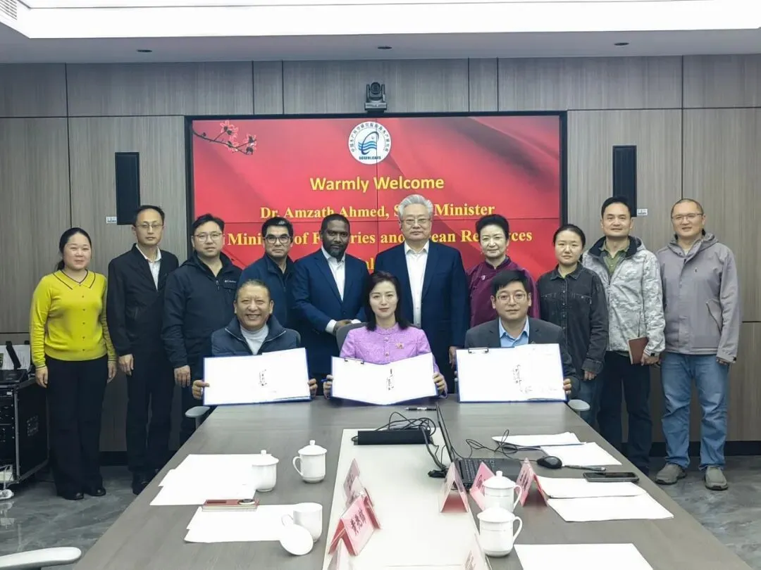 2月8,马尔代夫渔业和海洋资源部国务部长Amzath Ahmed、中国城市发展联盟海外联合发展工作委员会主任黄兆锦一行到中国水产科学研究院南海水产研究所访问交流,就推动黄鳍金枪鱼深远海养殖产业化深入交流,并举行三方科技合作意向书签约仪式。
