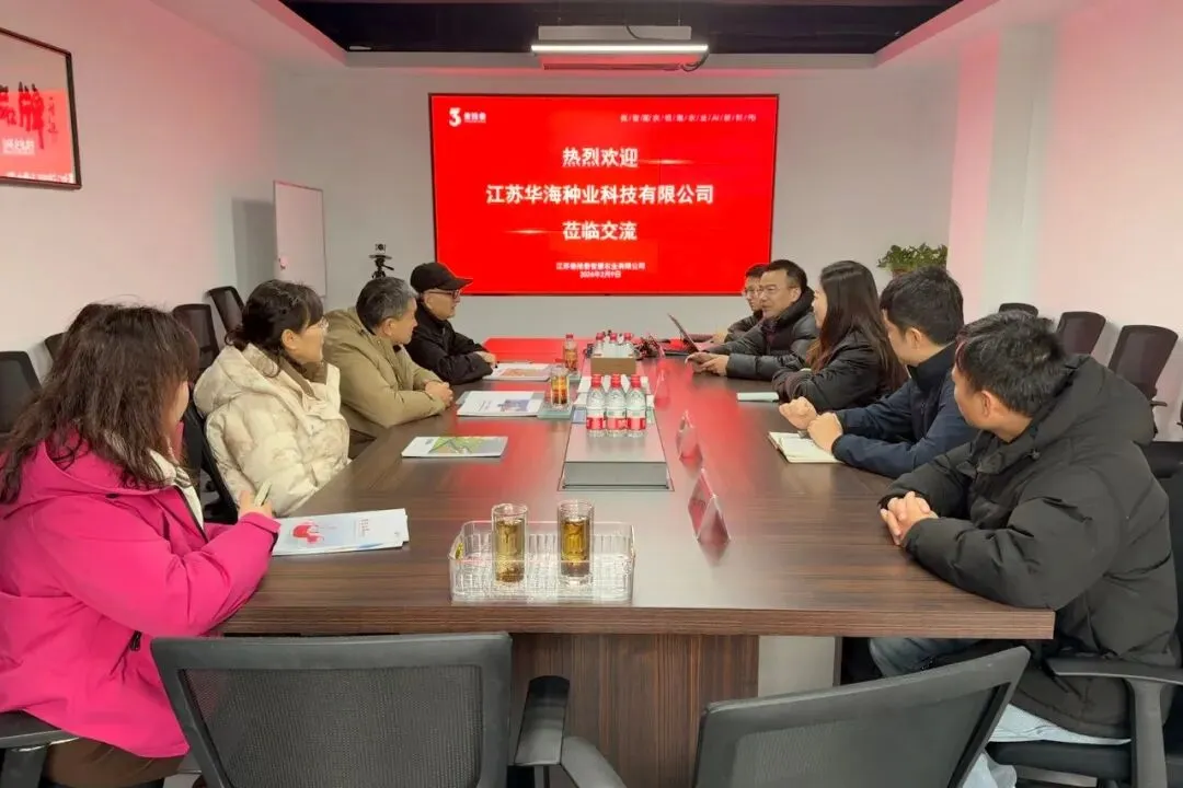 2月9日,南京农业大学动科学院关工委常务副主任曹光辛教授、江苏华海种业科技有限公司董事长强发旗莅临江苏叁拾叁指导参观,深入了解公司智慧农业产品研发与场景落地情况。江苏叁拾叁董事长张梓强、总经理刘卫民、机器人事业部总经理孙崇明全程陪同,双方围绕农业智能化升级、产学研融合等话题展开深入交流。