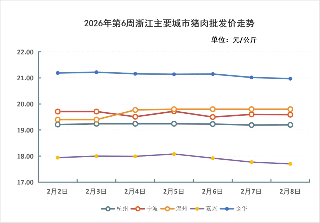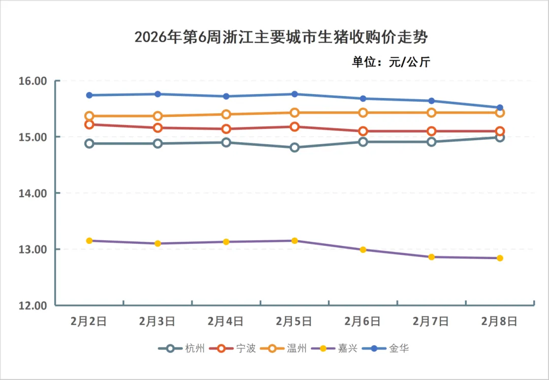 浙江2026年第6周生猪价格走势