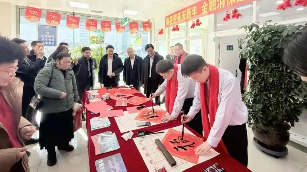 活动现场暖意融融、人气高涨。支行特邀知名书法老师与员工同台挥毫,专门设置定制书写专区,可自主挑选心仪的祝福语,由书法老师即兴创作、免费赠予。一幅幅笔力遒劲的春联、一个个寓意吉祥的“福”字跃然纸上。现场洋溢欢乐祥和的节日氛围,引得周边百姓纷纷驻足领取、拍照留念。