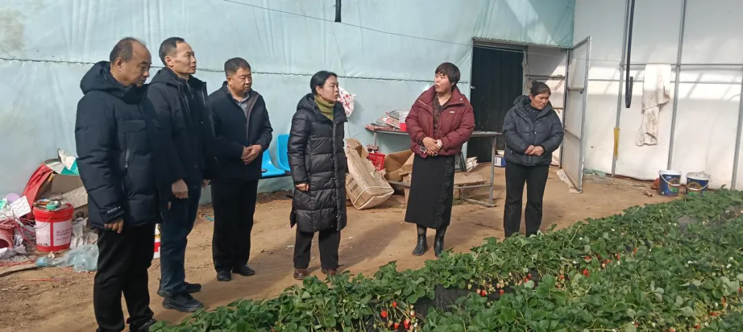 座谈会后,小分队深入到小黄村草莓生产大棚,查看安全生产情况,并就大棚保温、生产用电、棚室增温、电动卷帘、雪灾防范、雾天补光等进行了指导。在和川村蔬菜基地,小分队查看了西瓜大棚钢架结构越冬情况,对西瓜基地防洪排涝、地锚稳固等提出了指导性建议。同时,现场查看了正在进行旧棚改造的蔬菜大棚,对大棚通风口位置、水肥一体化改造、棚膜覆盖、卷帘机定位等改造内容进行了技术指导。