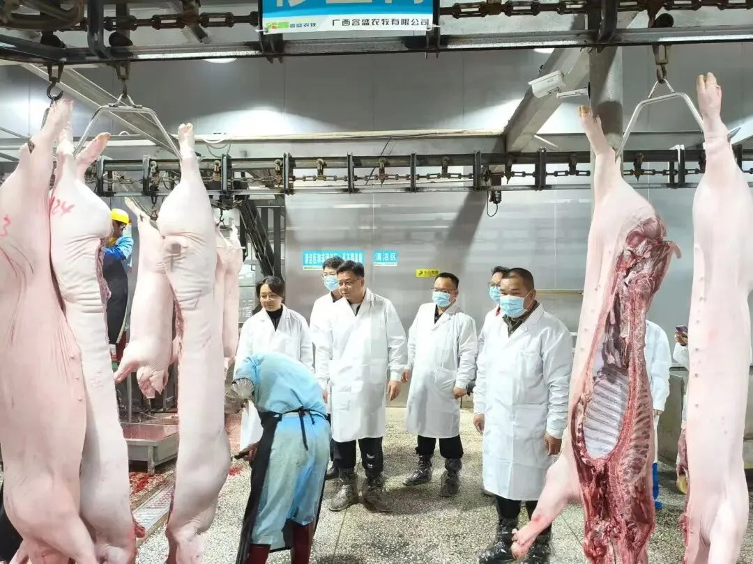 岁末年初是生猪肉品消费的高峰期,也是安全生产的重要关口。为保障我县春节期间生猪肉产品质量安全,防范屠宰环节安全风险,近日,博白县农业农村局组织局兽医股、县农业综合行政执法大队、县动物检疫站成立专项检查组,由副局长刘景生带队,采取“四不两直”方式,深入生猪屠宰企业,同步开展肉品质量安全及安全生产突击检查,严守安全底线,护航群众节日消费安全。
