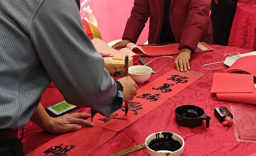 现场还设置书法体验区,一副副寓意吉祥的春联、一个个饱含祝福的福字,带着墨香送到农牧民手中,大家手拿春联,脸上满是幸福的笑容。