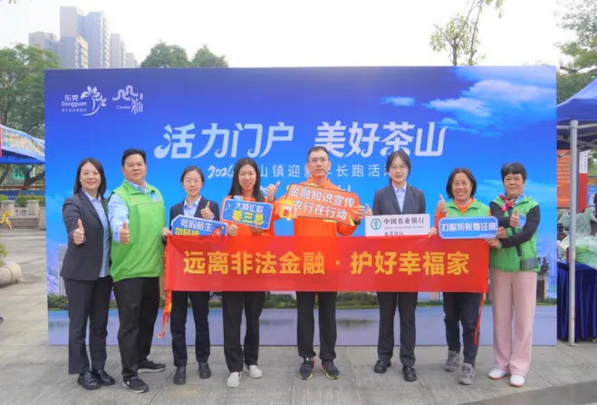 近日,2026年茶山镇迎新年长跑活动在茶花广场顺利举行。借此契机,农业银行东莞茶山支行联合茶山镇公安分局、茶山志愿者协会,共同开展“远离非法金融,护好幸福家”金融宣传活动,为市民呈现了一场金融知识普及的盛宴。