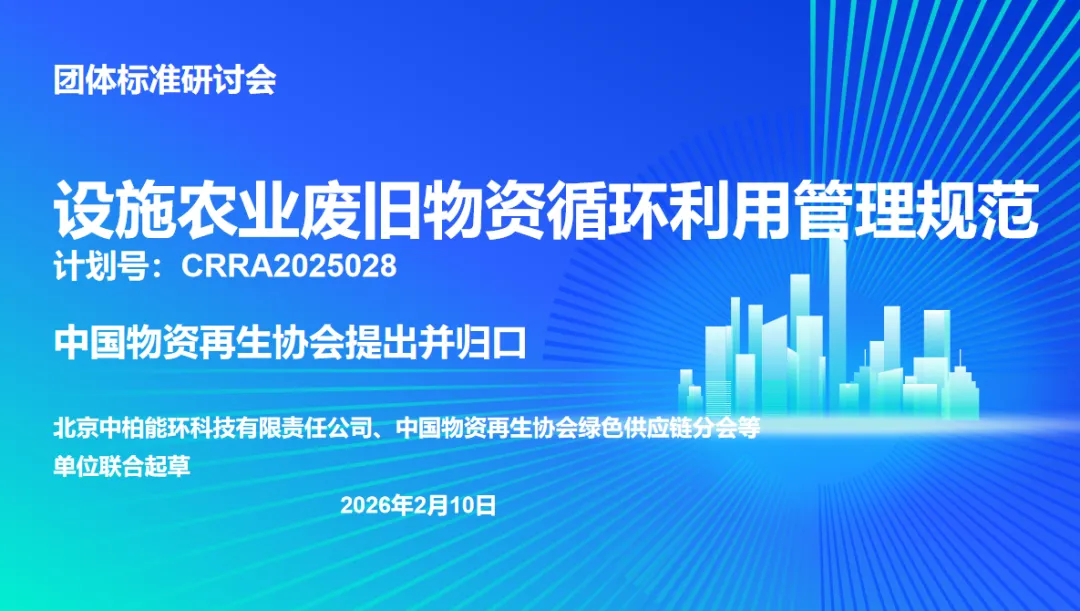 2月10日下午,中国物资再生协会绿色供应链分会通过线上方式组织召开《设施农业废旧物资循环利用管理规范》团体标准研讨会。北京中柏能环科技有限责任公司、农业农村部规划设计研究院、农业农村部规划设计研究院设施农业研究所、北京工业大学、北京科技大学、中国质量认证中心、北京市标准化研究院等单位共同参与会议。会议由中国物资再生协会统计与数智化部副主任、绿色供应链分会副秘书长赵洁玉主持。