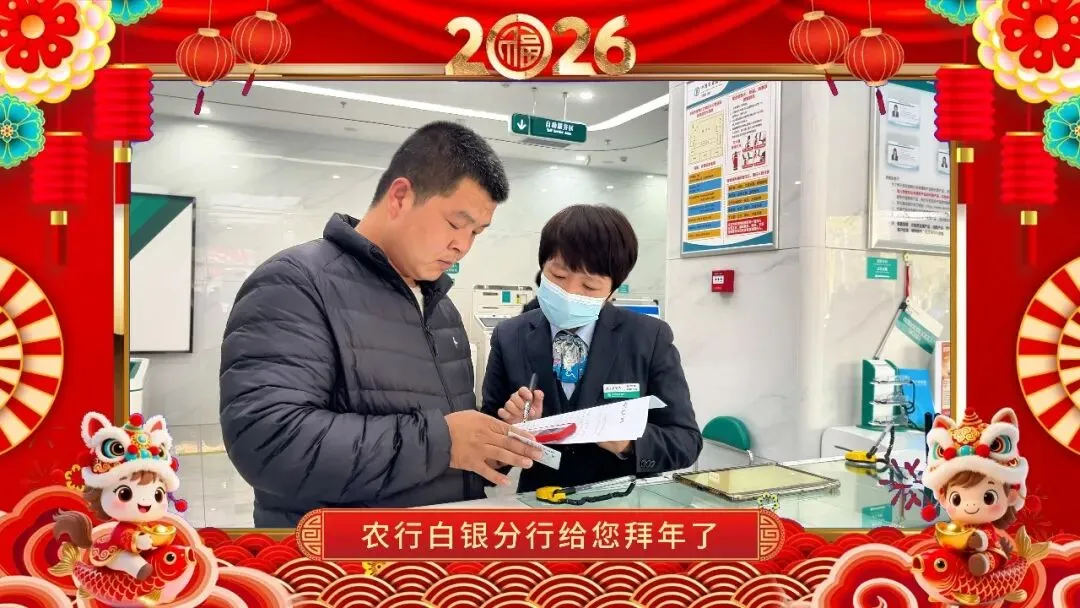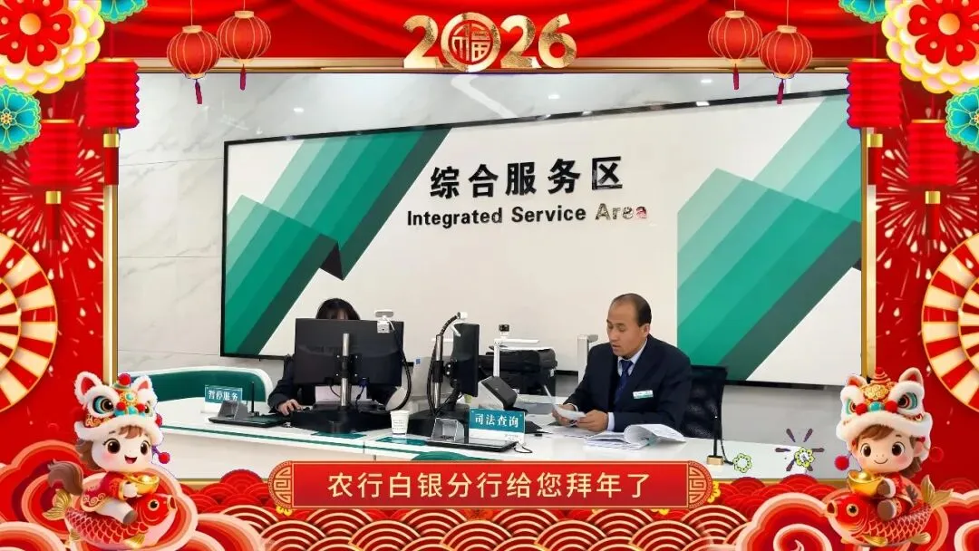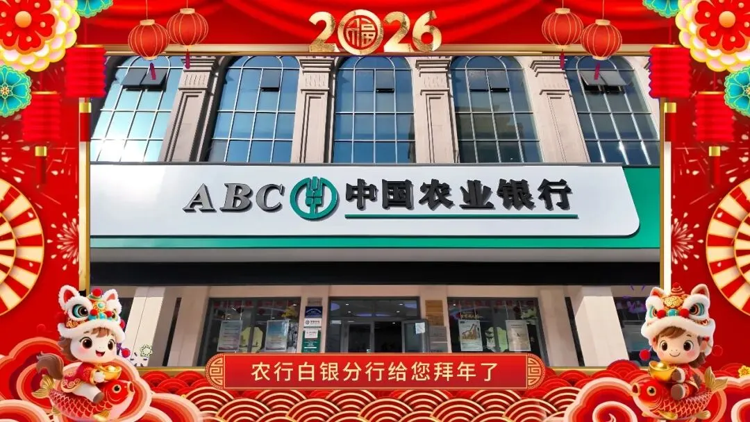 新岁启封,马跃新程。值此2026马年新春之际,中国农业银行白银分行将坚守金融初心,深耕主责主业,始终将服务三农、助力乡村振兴作为立身之本,全力护航实体经济发展,用心服务地方建设。新的一年,我们聚焦普惠金融、科技金融、绿色金融三大方向,不断优化金融产品与服务体验,以更便捷、高效、有温度的服务惠企利民。坚持稳健经营、守正创新,持续深化数字化转型,以坚实金融力量守护万家烟火,赋能美好生活。同心同行,奋楫争先。农行白银分行愿与广大客户携手并进,共谱高质量发展新篇章,恭祝社会各界新春安康、万事顺遂、马到成功!
