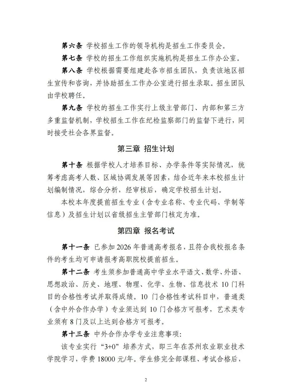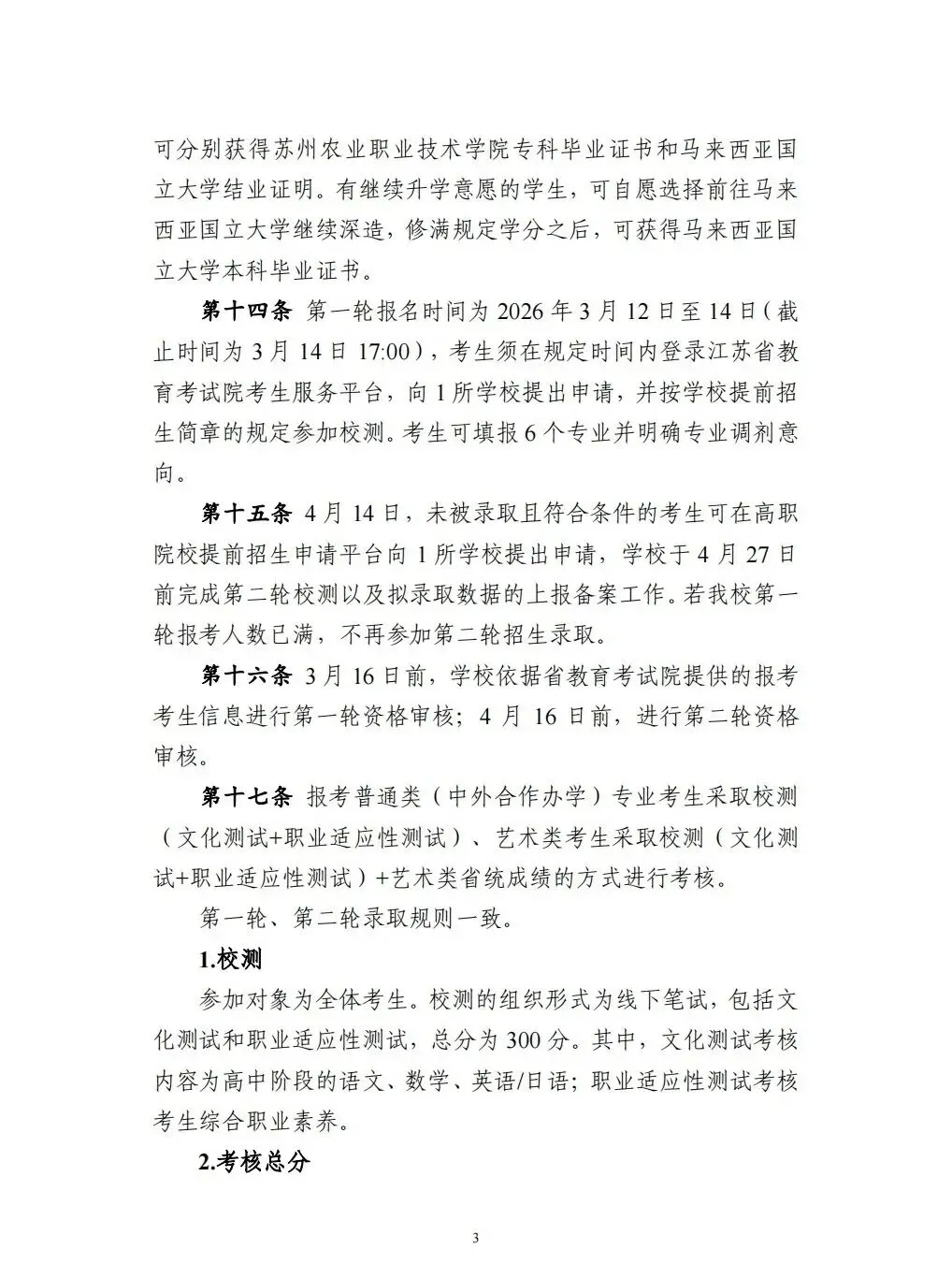 高职单招|苏州农业职业技术学院2026年提前招生报考指南