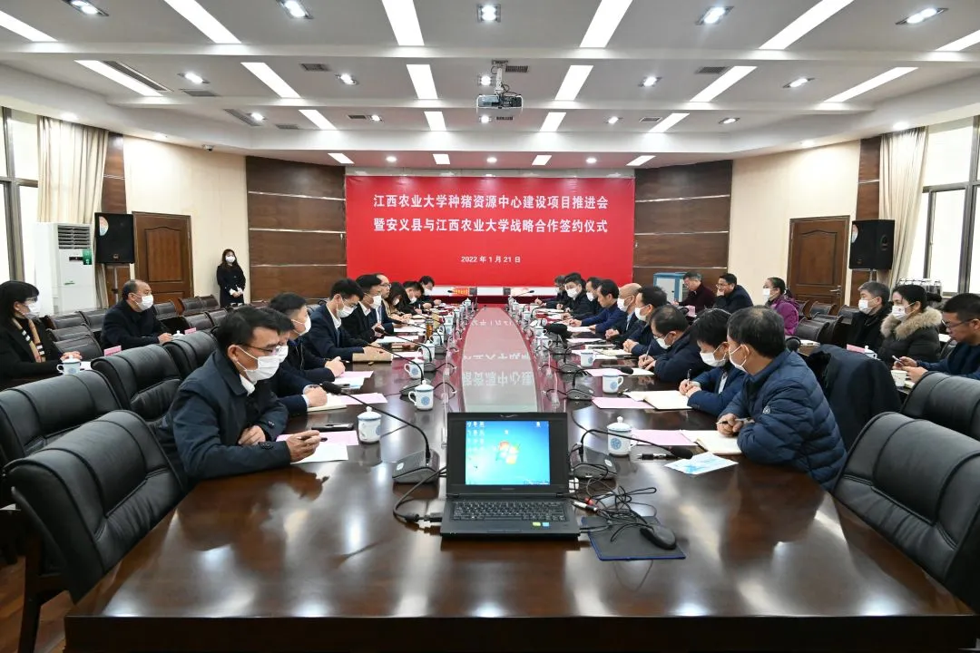 会议由江西农大副校长许斌华主持。会上,县长罗国栋汇报了国家种猪资源中心项目协调推进情况。双方在会上签订了战略合作框架协议。