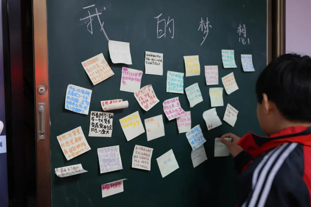 一位小朋友在体验后说到:“好神奇好惊喜!我看到了很多没见过的东西!而且里面的人物栩栩如生!”最后,小朋友们在黑板上用便利贴与彩笔留下了自己的梦想,本次科技助学课程渐渐落下帷幕。这场虚实交融的旅程,也极大地激发了孩子们对科技世界的好奇心与求知欲,同时一段关于未来专业选择的思考,也随着这次体验悄然启程。