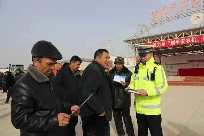 为进一步加强农机安全监管,筑牢农村道路交通安全防线,切实保障群众生产作业安全,02月10日,泽普交警联合县农业农村局深入赛力乡,召开创平安农机 促安全生产” 专题推进会,赛力乡农机手参加活动。会上,相关负责人围绕农机安全管理、道路通行规则、春耕备耕期间交通安全风险等内容进行部署强调。