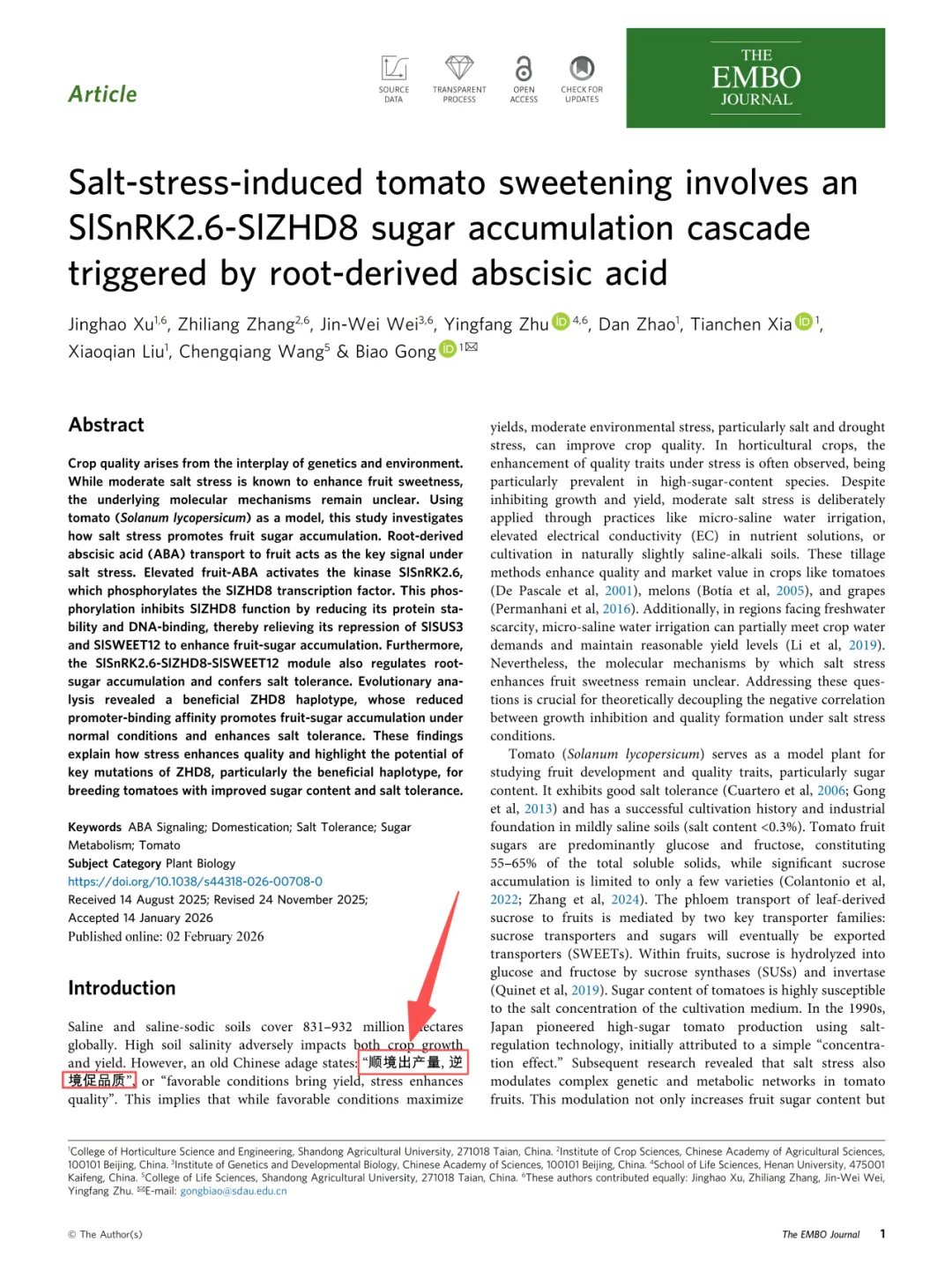 习近平总书记指出,“18亿亩耕地红线要守住,5亿亩盐碱地也要充分开发利用。如果耐盐碱作物发展起来,对保障中国粮仓、中国饭碗将起到重要作用。”从分子机制到田间实践,该研究不仅揭示了“逆境促品质”的科学内涵,也为盐碱地资源化利用与特色农业发展提供了关键技术支撑。