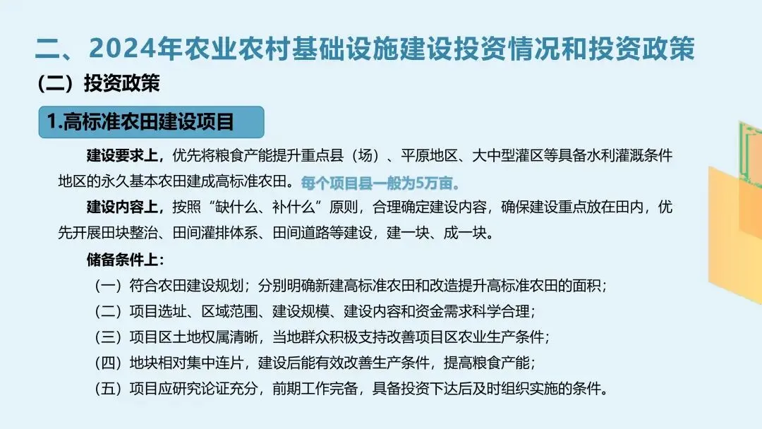 2024年已经开始纠偏了,高标准农田明确要求“缺啥补啥”,集中连片,权属清晰,建一块就得成一块。