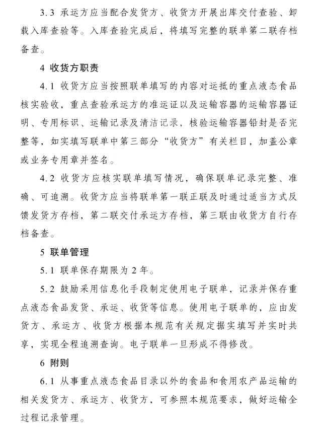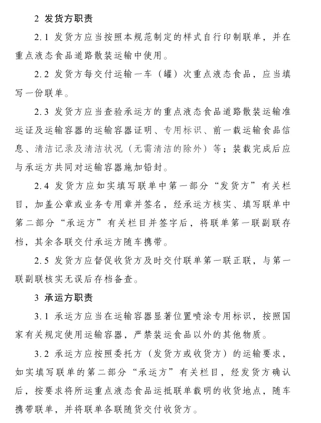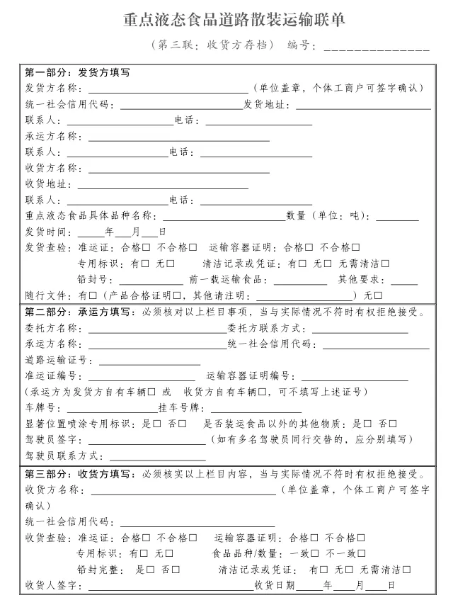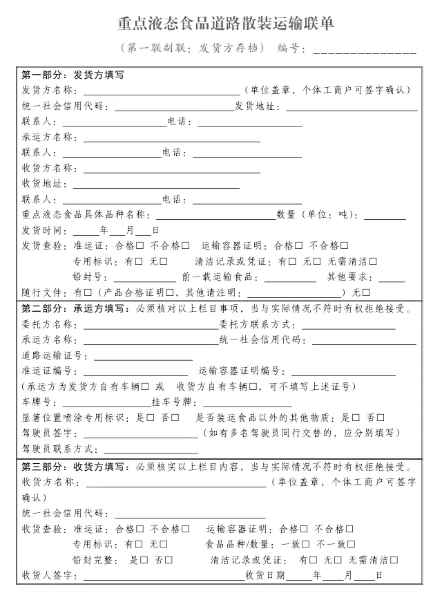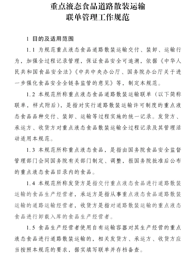 【权威】市场监管总局 交通运输部 农业农村部 国家粮食和储备局 关于印发《重点液态食品道路散装运输联单管理工作规范》的通知