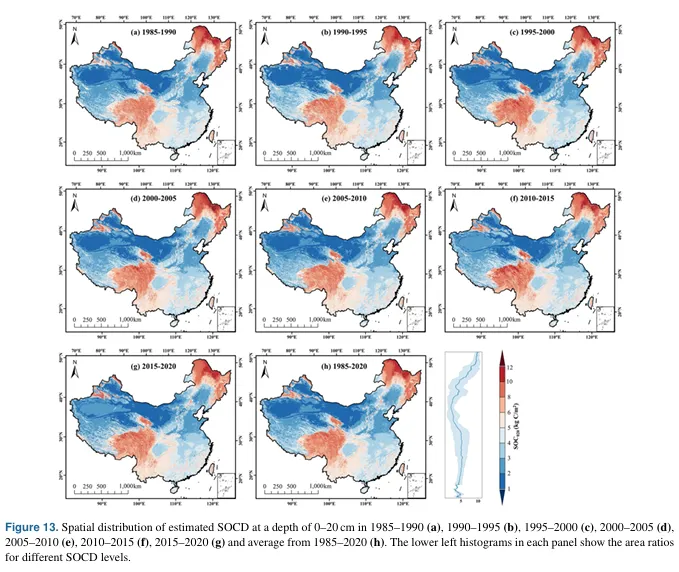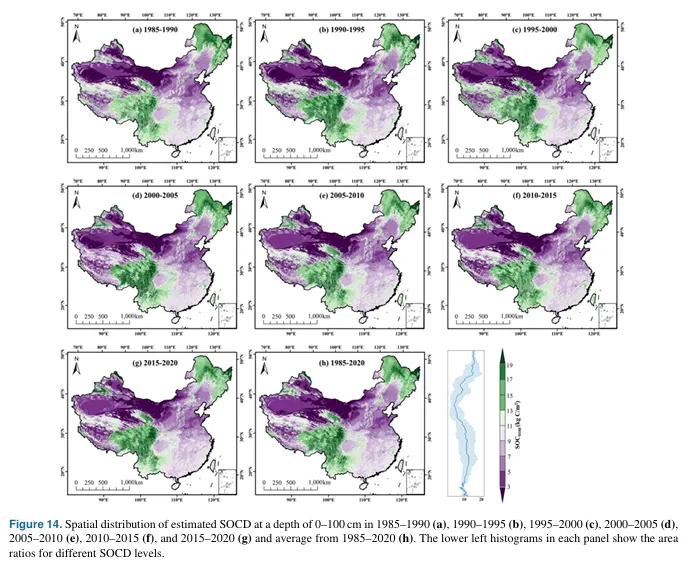 首次构建中国1985–2020年高分辨率、多深度SOCD长时间序列数据集;