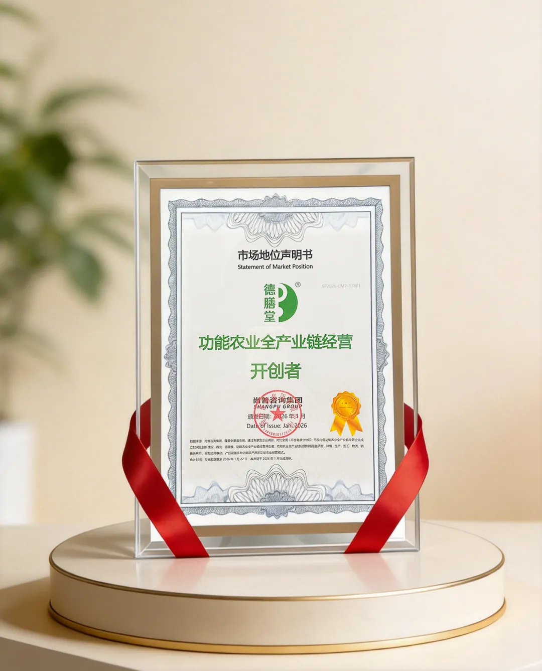 此次为德膳堂颁发的 “开创者” 认证,标志着行业对其全产业链模式创新的高度认可 —— 这不仅是对一家企业的肯定,更是对功能农业产业化发展方向的背书!