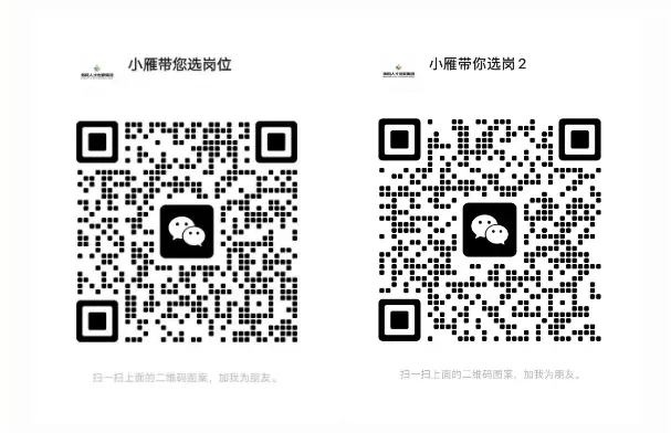 长按识别下图二维码,添加“小雁带您选岗位”为微信好友;