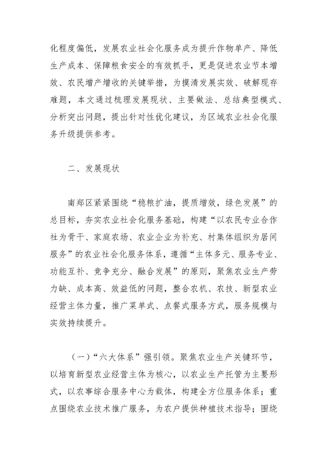 深耕服务赋能农业 激活乡村振兴动能——汉中市南郑区农业社会化服务调研报告