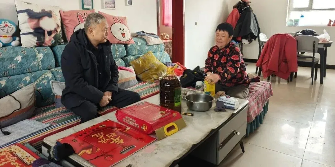 在结对关爱对象家中,结对干部为他们送去鸡蛋、挂面等慰问物资,与其促膝谈心,详细了解身体近况、生活需求与实际困难,耐心解答政策疑问,并叮嘱关爱对象要注意节日期间安全,鼓励他们在政策帮扶与自身努力下,让生活水平迈上新台阶。