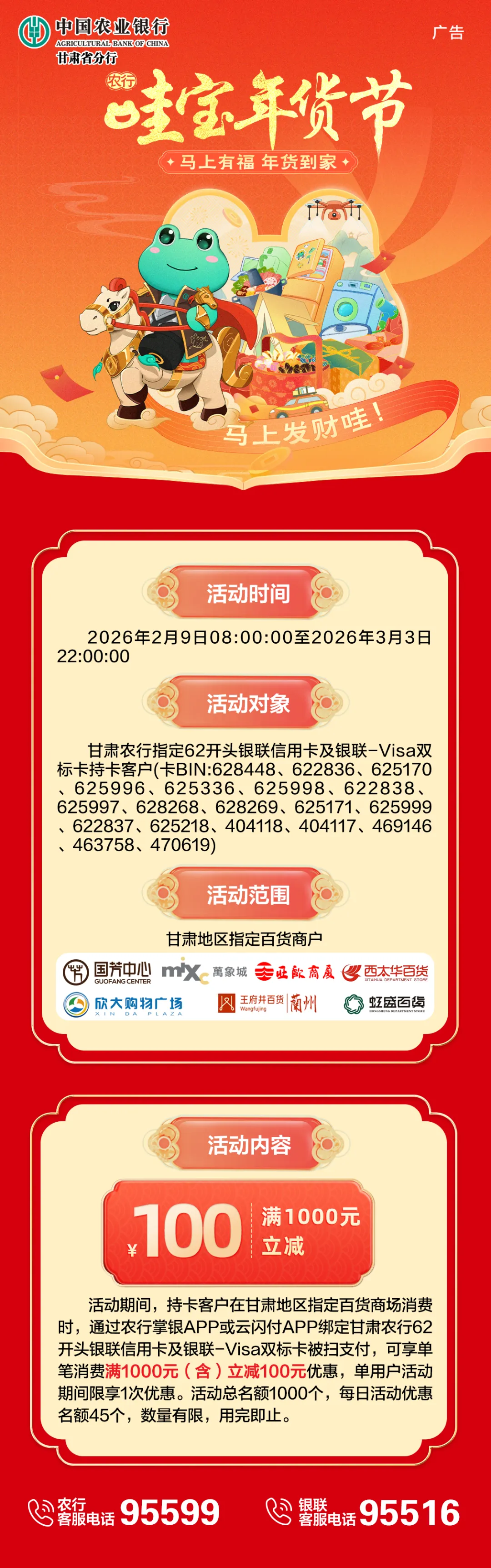 >农业银行|马上有福,年货到家,满1000元立减100元