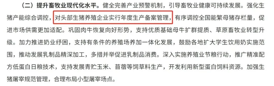 重磅信号!农业农村部对头部猪企实行年度生产备案管理,产能调控再加码!