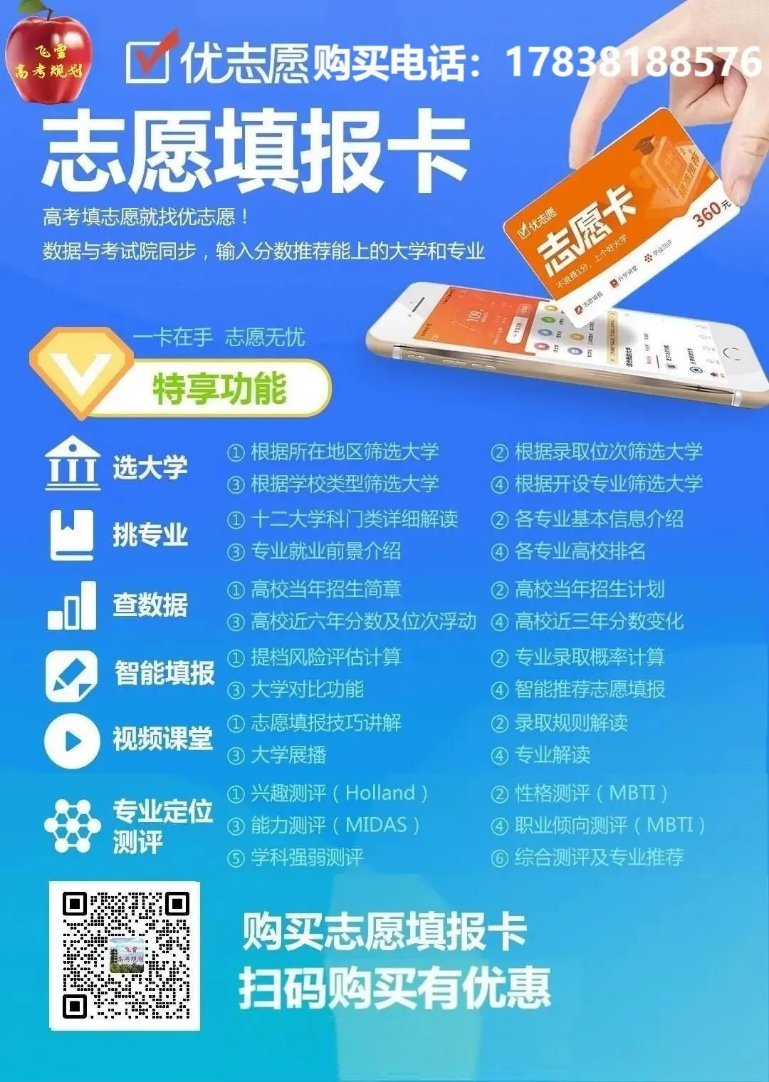欢迎各位家长购买优志愿志愿卡原价360元,现在购买有优惠,仅需***元,购买后可入购卡会员专属群,进会员专属群后领取2021-2025年在河南招生院校专业组投档线、专业分数线Excel版及高考志愿填报资料!与飞雪老师一同学习更多高考志愿填报知识,志愿卡使用方法,随时解答家长疑问。
