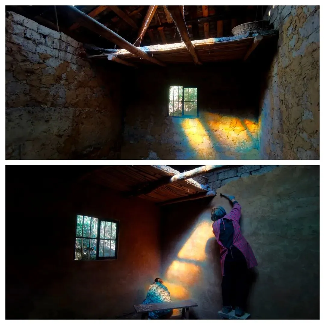 两天工作坊结束,房屋焕然一新。墙面平整温润,地面踏实稳重,阳光透过窗户洒进来,整个空间都是暖的。
