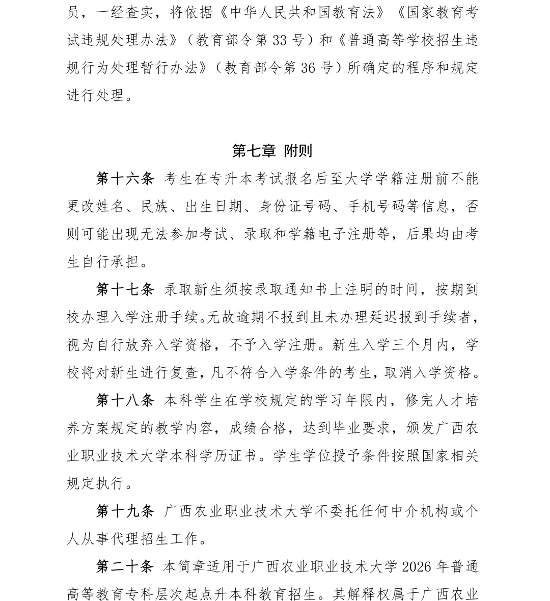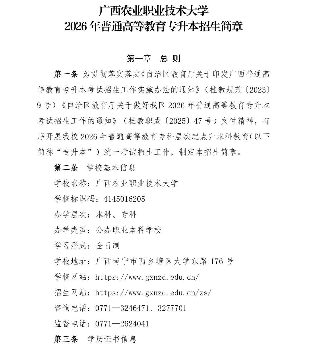【招生简章】广西农业职业技术大学 2026 年普通高等教育专升本招生简章