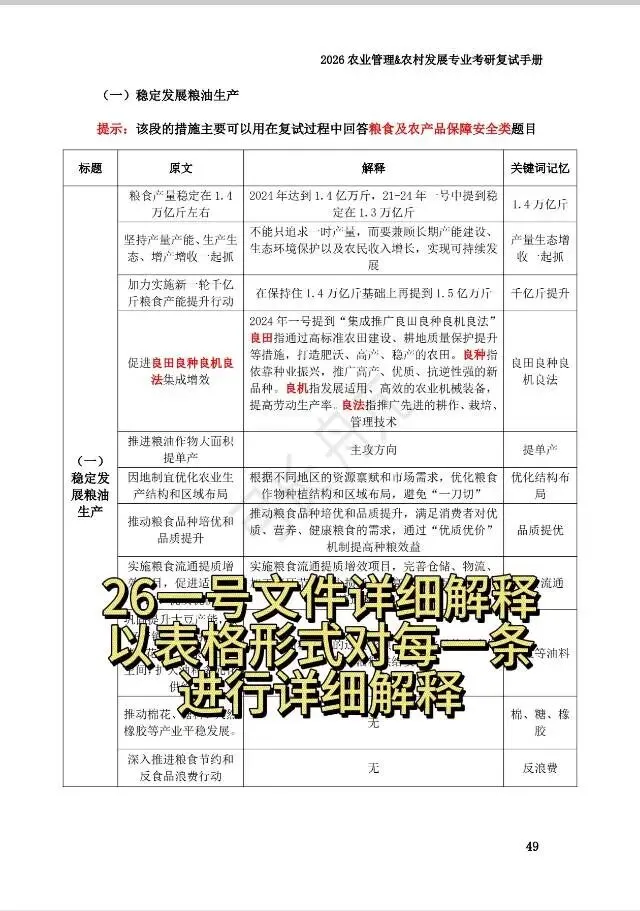 26农业管理&农村发展复试手册(含26一号文件解析)