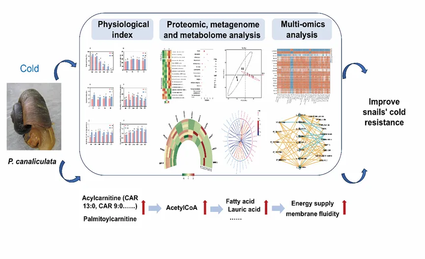 福寿螺是世界性的外来入侵物种,威胁全球农业生产与生态安全。全球变暖加剧促使福寿螺生存和繁殖范围扩大到更高的海拔地区。耐寒性是福寿螺入侵能力的关键决定因素。福寿螺拥有独特的肠道微生物群,而且肠道微生物组成和代谢特征对其耐寒性至关重要。外部环境因素如地理纬度塑造了福寿螺肠道微生物群的结构和功能,进而调节宿主代谢过程、细胞功能和组织稳态。可以推测,高纬度地区福寿螺肠道微生物群在入侵过程中发生了显著的结构和功能改变,从而协同增强宿主的低温适应性。然而,肠道微生物群介导宿主耐寒性的调控机制及其与冷胁迫代谢物的相互作用仍不清晰。本研究以福寿螺为研究对象,采用多学科方法探讨不同纬度福寿螺肠道微生物群对冷胁迫的协同反应和潜在分子机制,为肠道微生物群与宿主福寿螺抗寒性之间的相互作用提供了新见解。