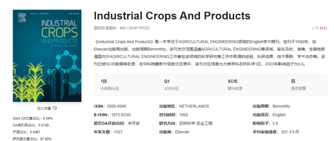 农业工程一区“水刊”!最快22天Accept,我愿称之为农科SCI天花板!