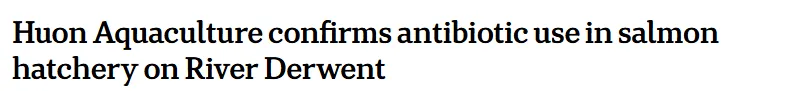 澳洲知名三文鱼企业Huon Aquaculture承认,在River Derwent上游的淡水孵化场使用抗生素治疗患病鱼群。