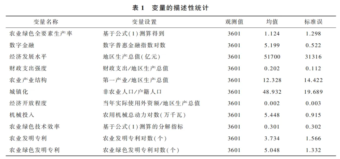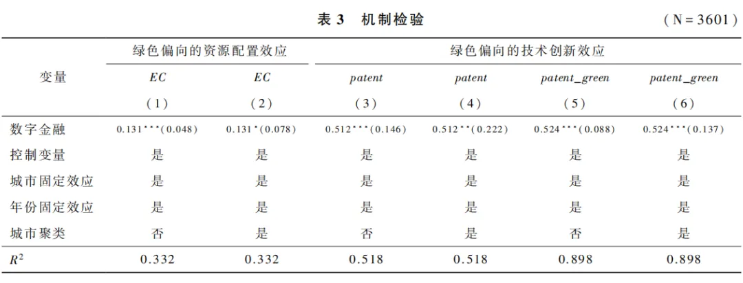 H2:数字金融能够通过绿色偏向的资源配置效应提高农业绿色全要素生产率。H3:数字金融能够通过绿色偏向的技术创新效应提高农业绿色全要素生产率。